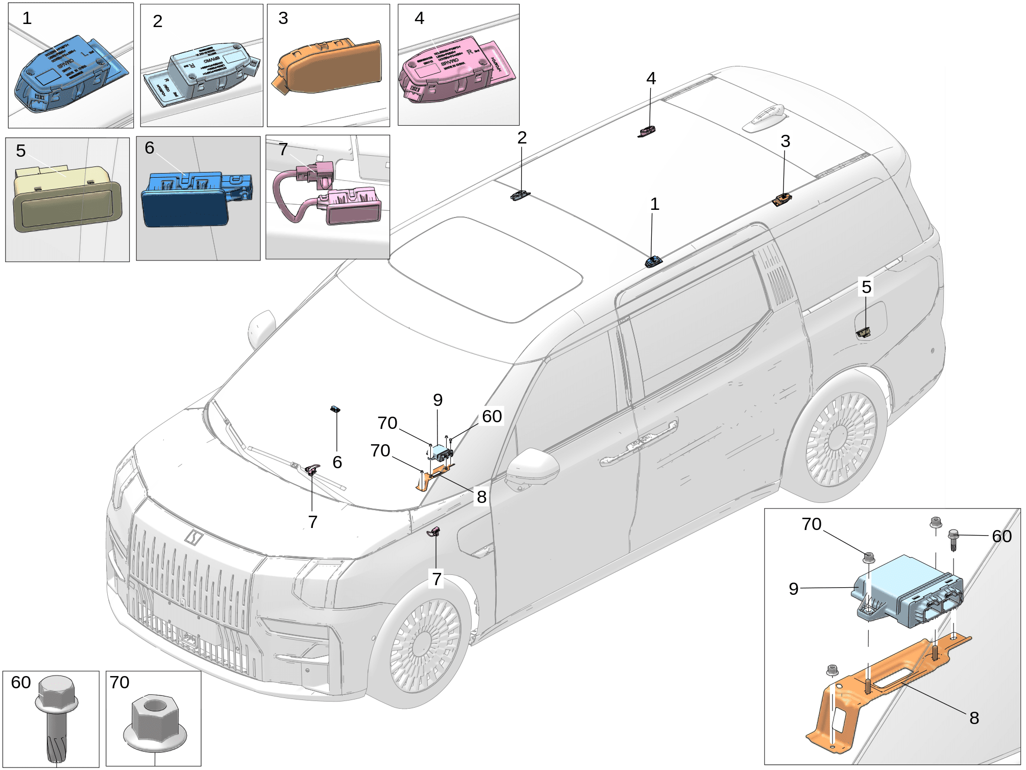 Product: 8889338805 8889789646 后阅读灯 左 后阅读灯 右 适用于极氪009